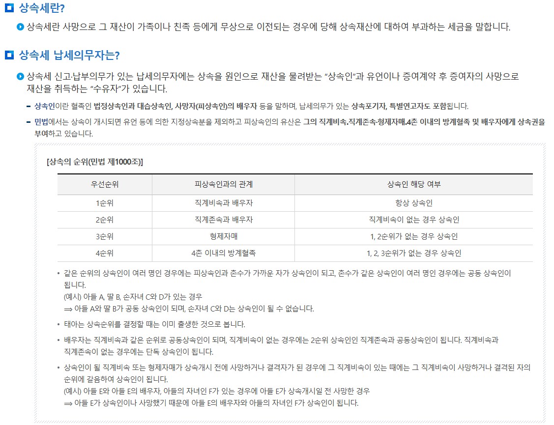 - 상속세 신고는 사망일이 속한 달 말일부터 6개월 이내 완료해야 합니다.
